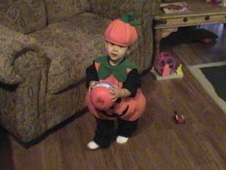 Russell was a pumpkin for Halloween this year. I should mention that the hat was the only one that he didn't try to take off constantly.